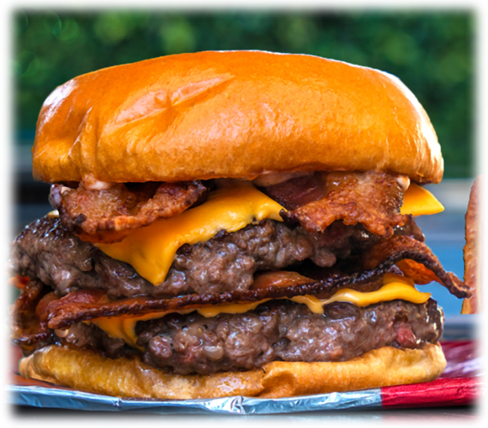 Hamburguesa doble X-Treme de 8 oz con queso y tocino 16.95